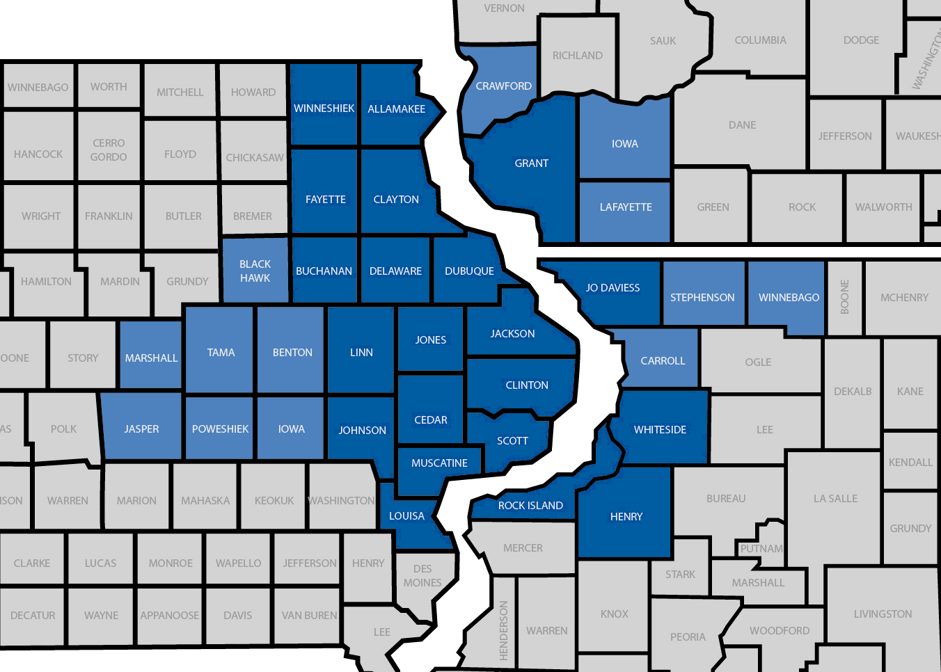 If you live or work in any of the 34 counties we serve, you’re eligible to become a DuTrac member.